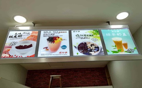 2、做餐飲的店面適合放置超薄燈箱嗎?燈箱邊框的顏色可以定制?
