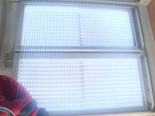 4.墊板到框架,用螺絲固定,然后蓋上LED燈條底板和通過玻璃膠,其中安裝在所述電源控制線的外框架的邊緣固定的(紅色和藍色線對接)。